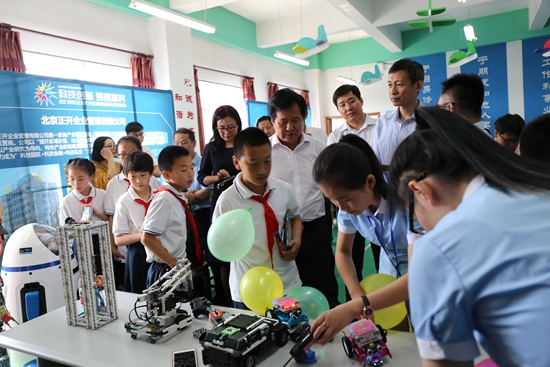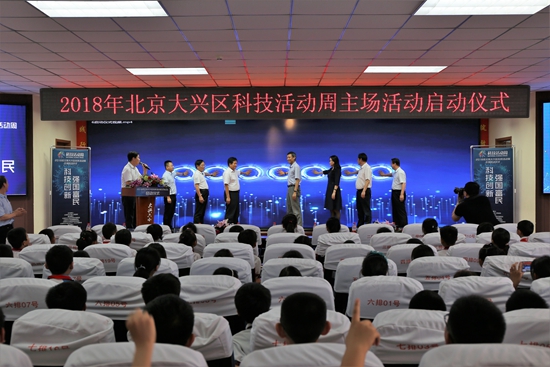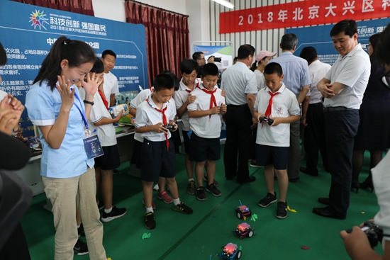 | 5月18日,由大兴区人民政府主办,区科委、区教委、区科协、区关工委承办,大兴区第六小学、北京帕皮时代教育科技有限公司协办的“2018年北京大兴区科技活动周主场启动仪式”在第六小学隆重开幕。科技活动周以“科技创新 强国富民”为主题,旨在深入实施创新驱动发展战略,大力普及科学知识,弘扬科学精神,提高全民科学素养,为新时代全面深入实施创新驱动发展战略、加快建设世界科技强国营造良好的创新文化氛围。区政协副主席、科委主任苏荣,区关工委主任周静溪等领导出席会议,共同启动2018年大兴区科技活动周。